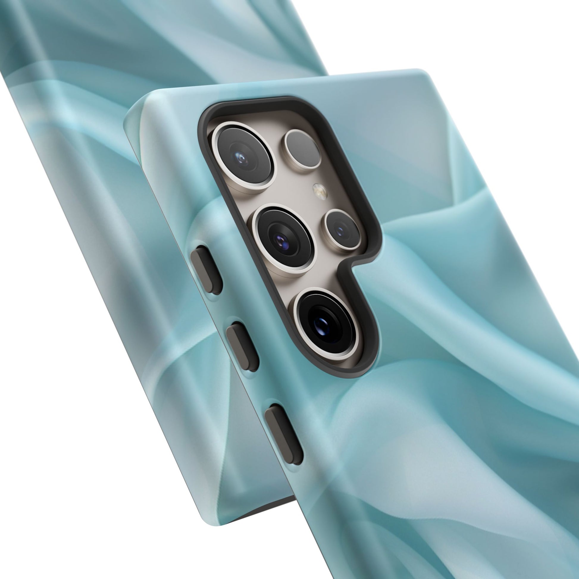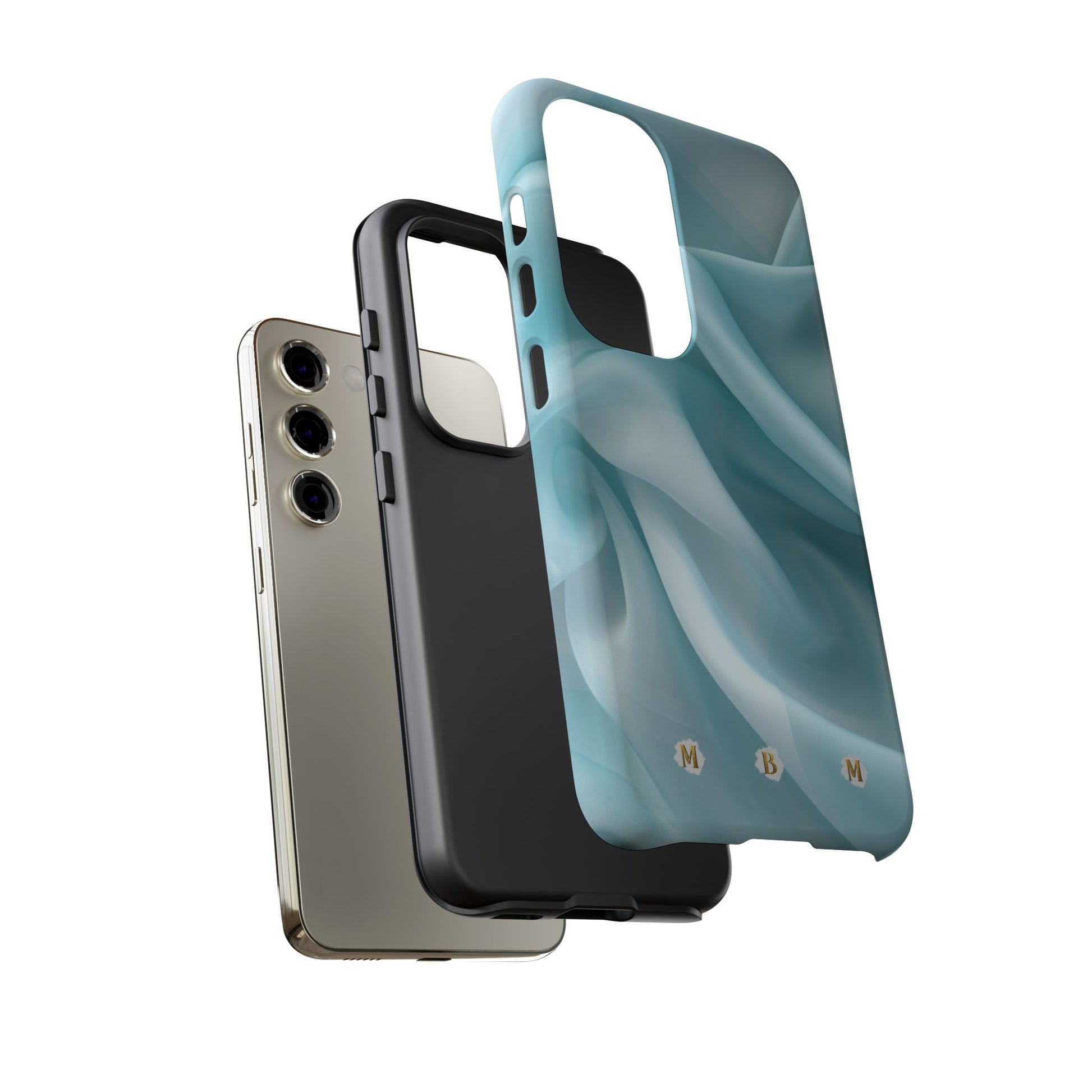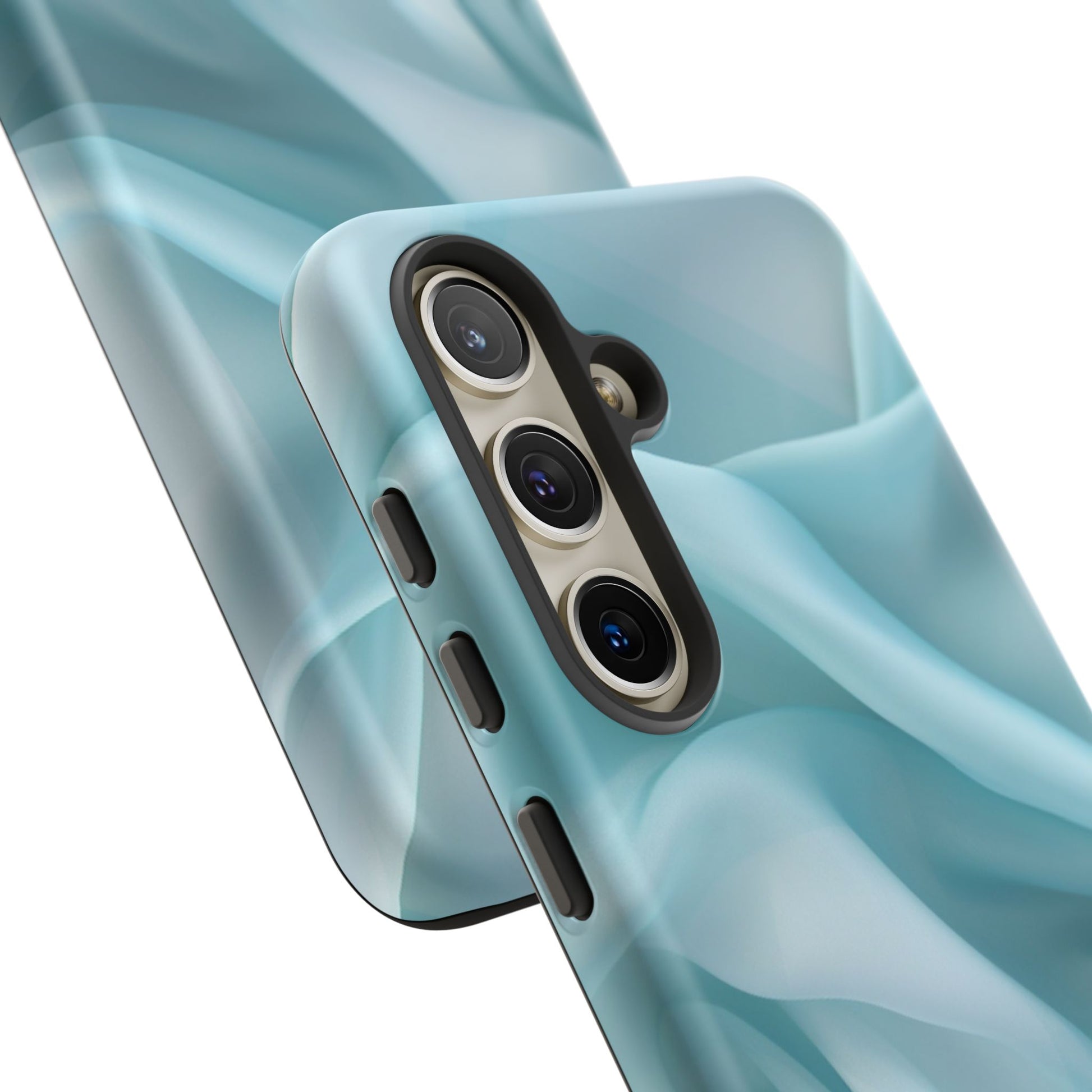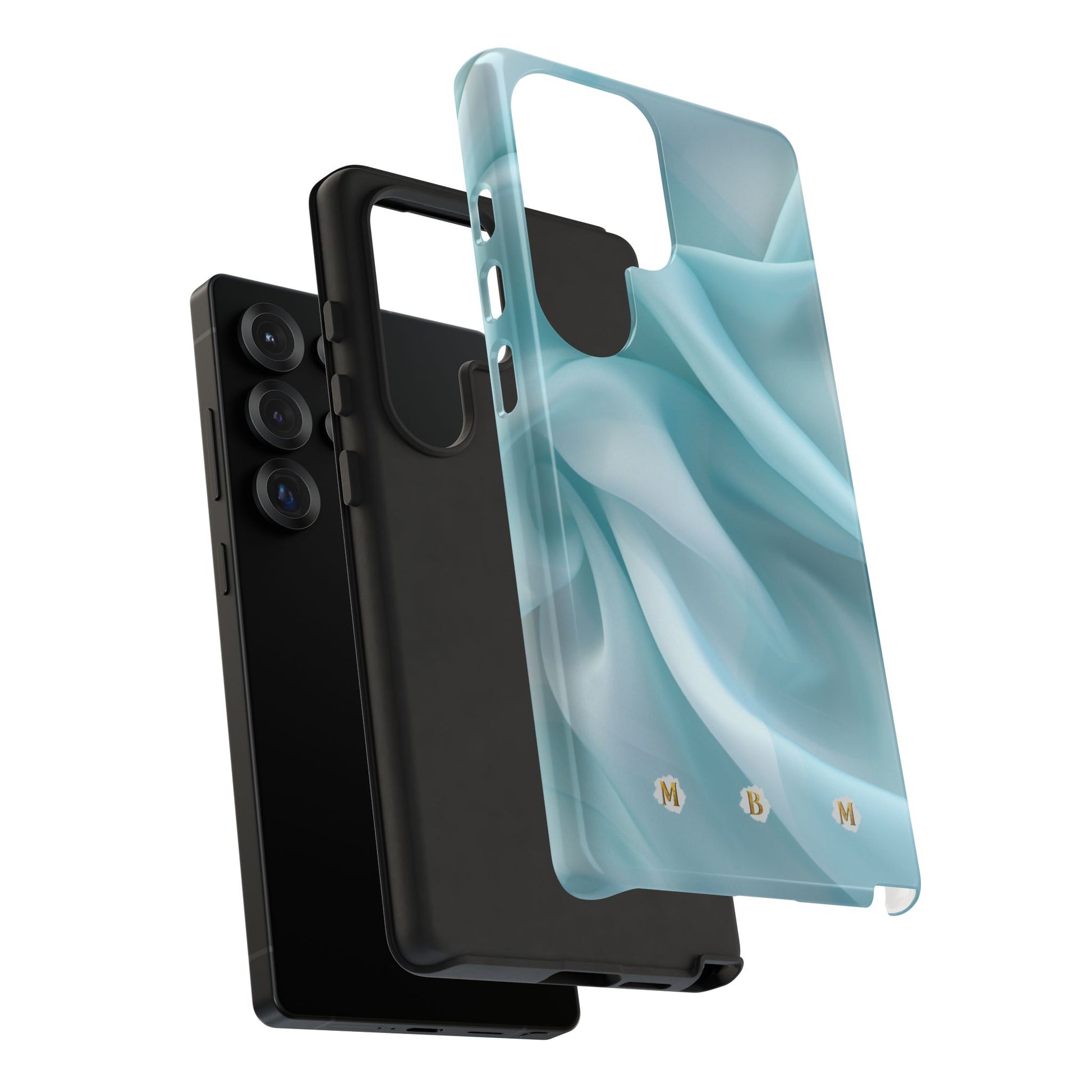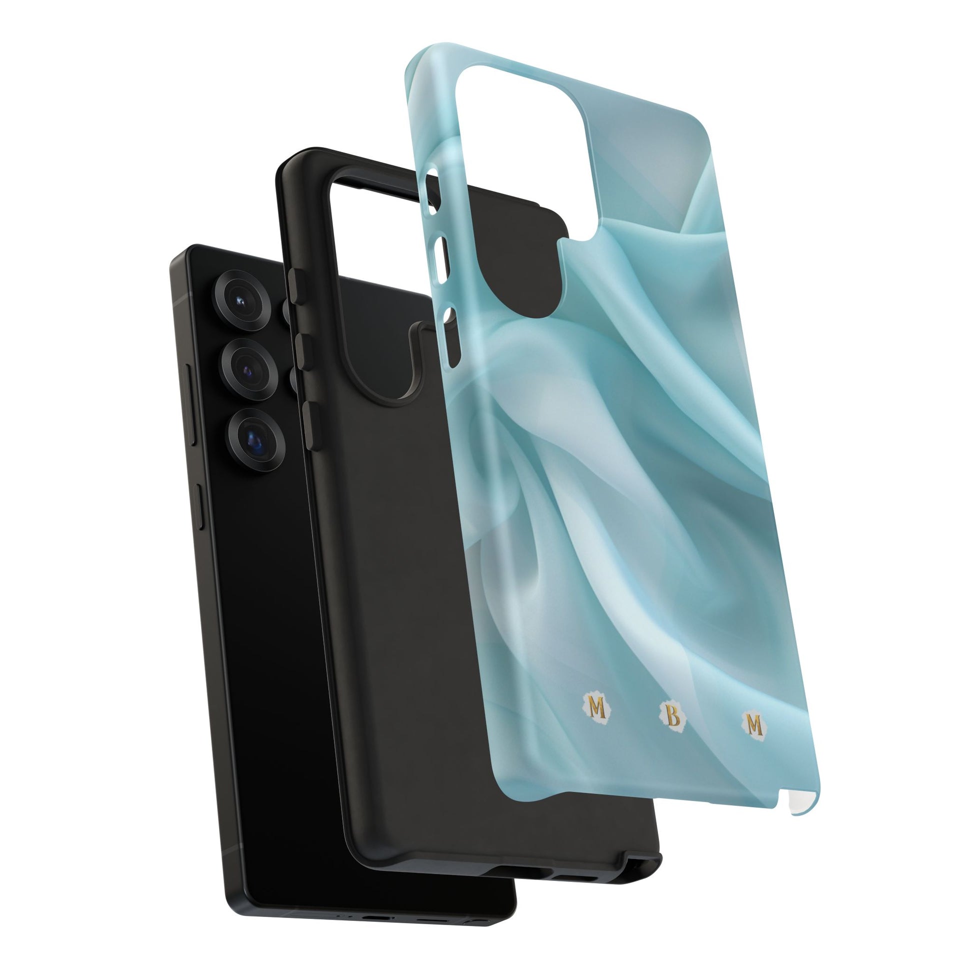 Oh, brace yourselves for a phone case that's as dreamy as a cloud drifting across a summer sky! Picture this: a phone case adorned with sky blue and soft white saffron fabric, delicately flowy and puckered to give it that irresistible depth. It's like holding a piece of the sky right in the palm of your hand, but with a touch of romance woven in. Trust me, your phone will feel like it's floating on air with this heavenly accessory. Prepare for your heart to skip a beat every time you catch a glimpse of it!