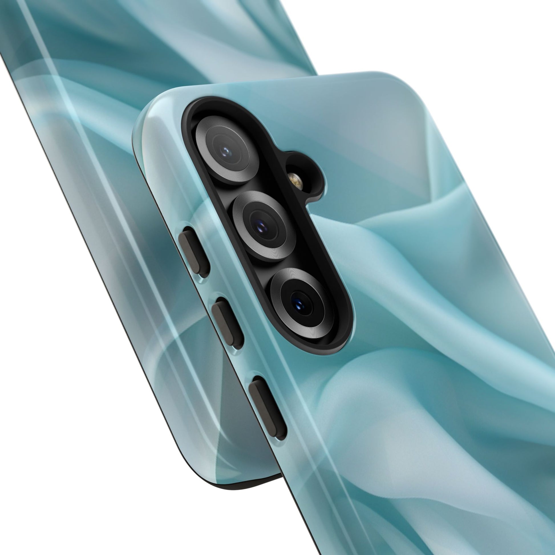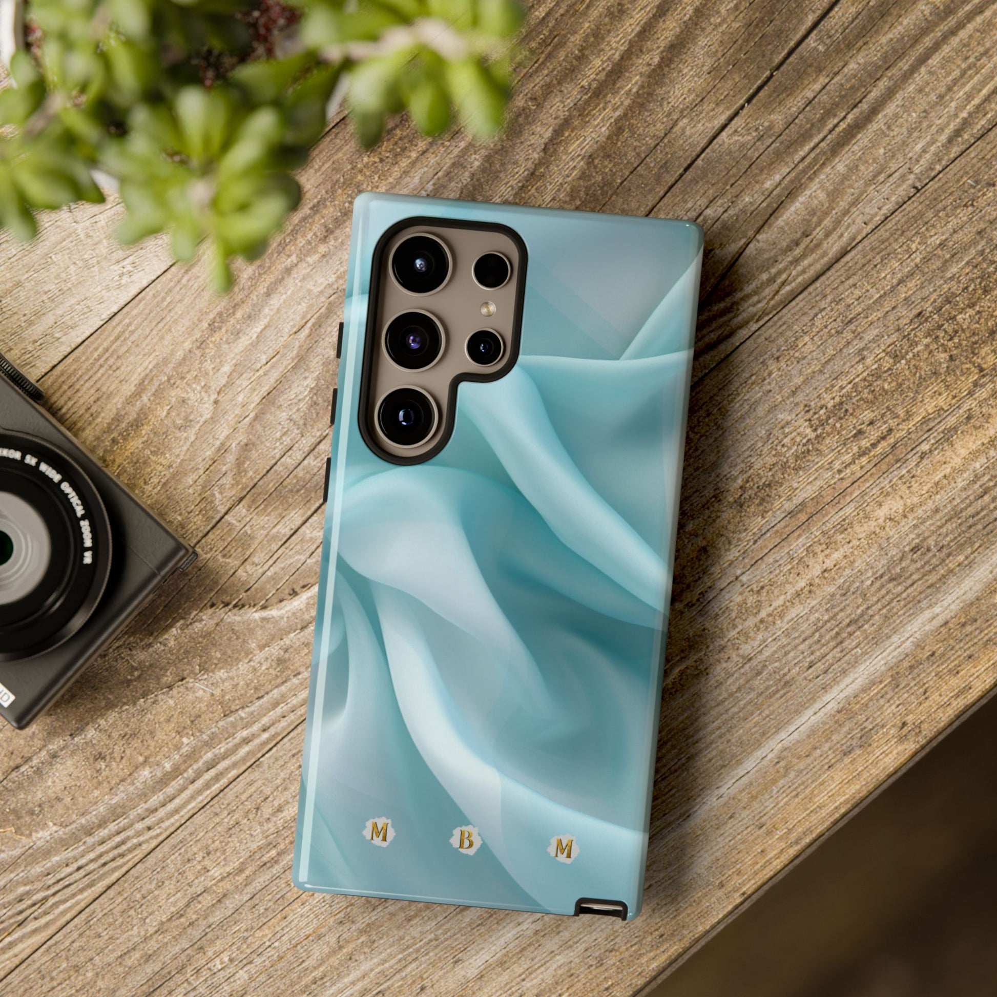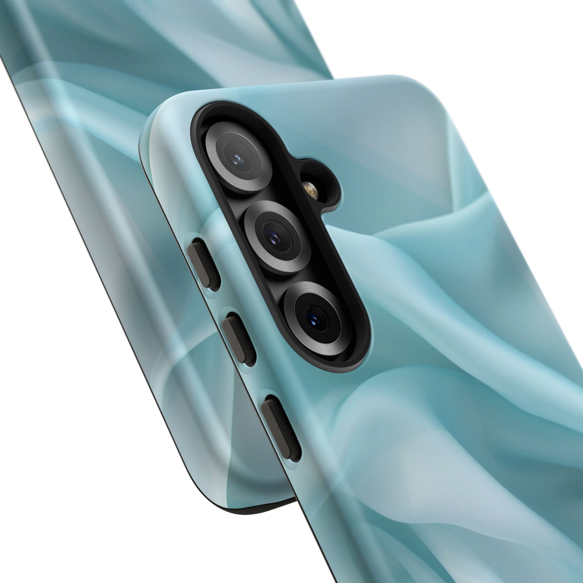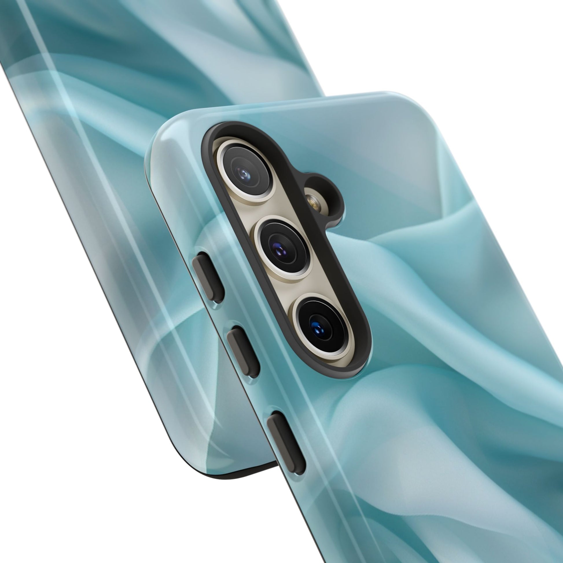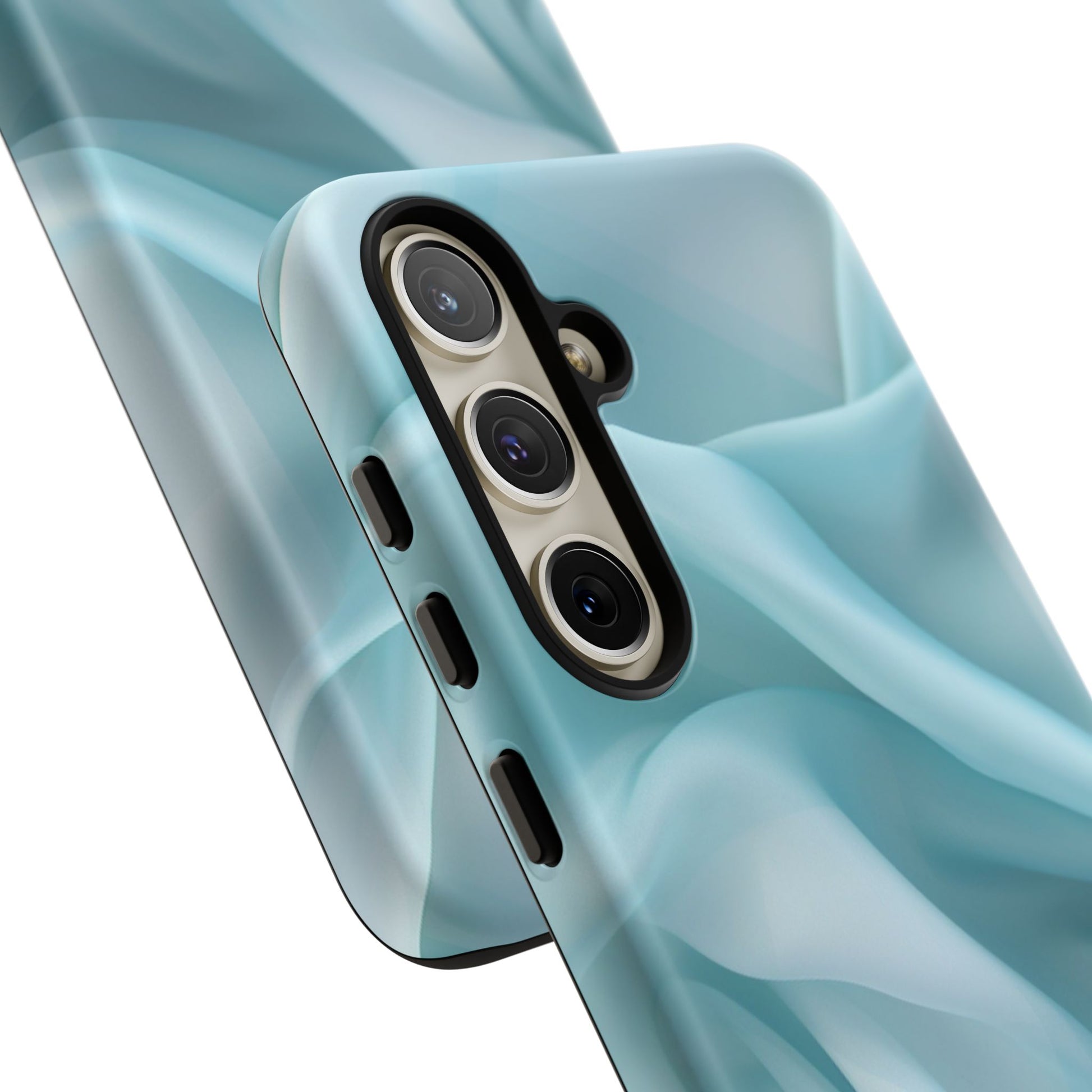 Oh, brace yourselves for a phone case that's as dreamy as a cloud drifting across a summer sky! Picture this: a phone case adorned with sky blue and soft white saffron fabric, delicately flowy and puckered to give it that irresistible depth. It's like holding a piece of the sky right in the palm of your hand, but with a touch of romance woven in. Trust me, your phone will feel like it's floating on air with this heavenly accessory. Prepare for your heart to skip a beat every time you catch a glimpse of it!