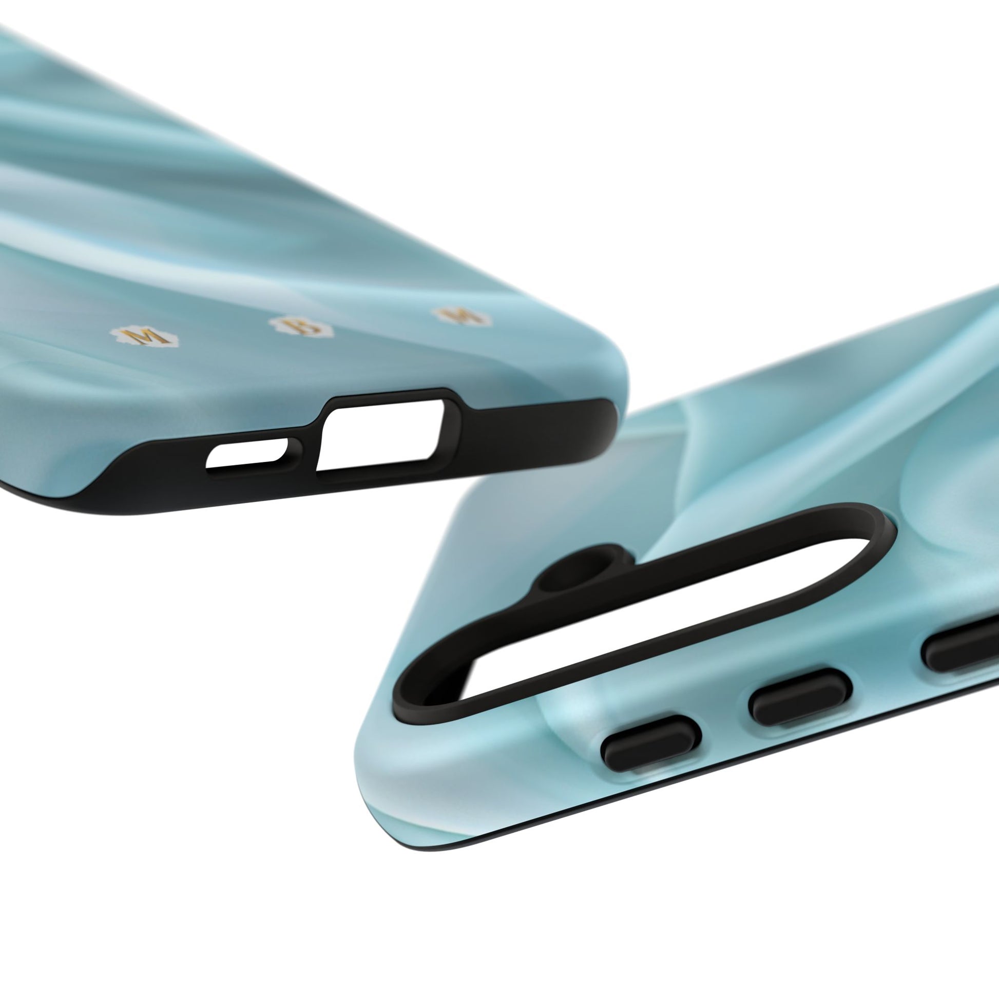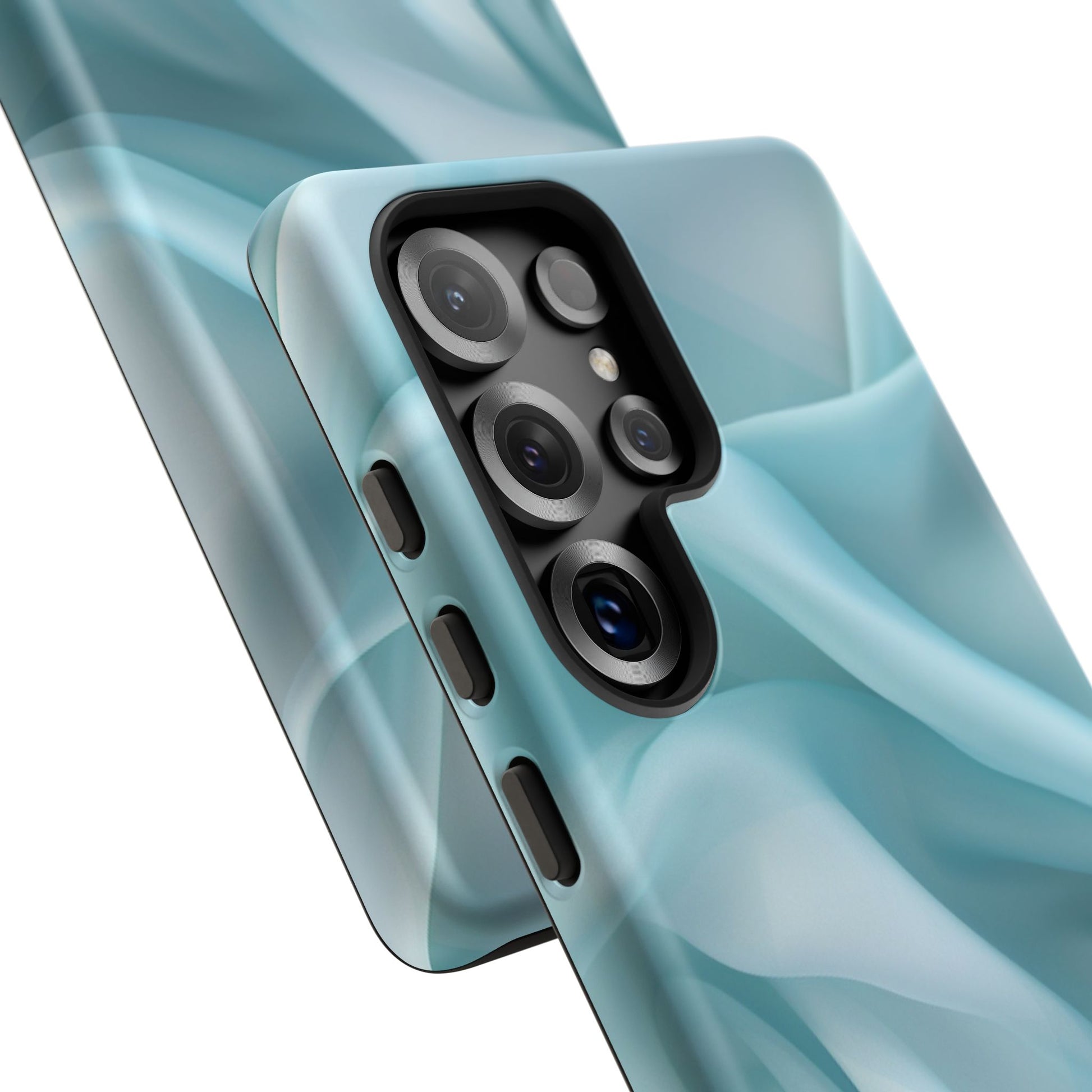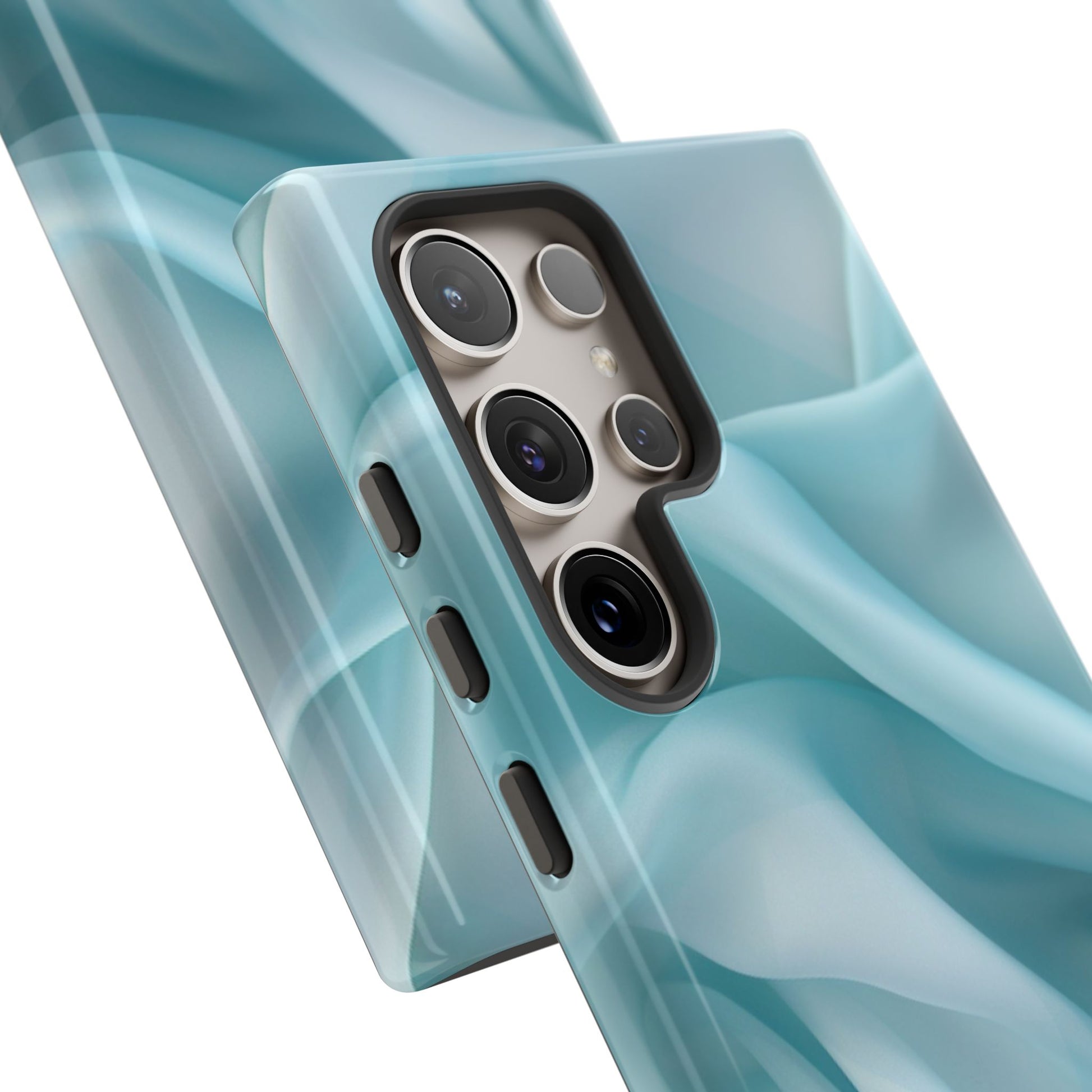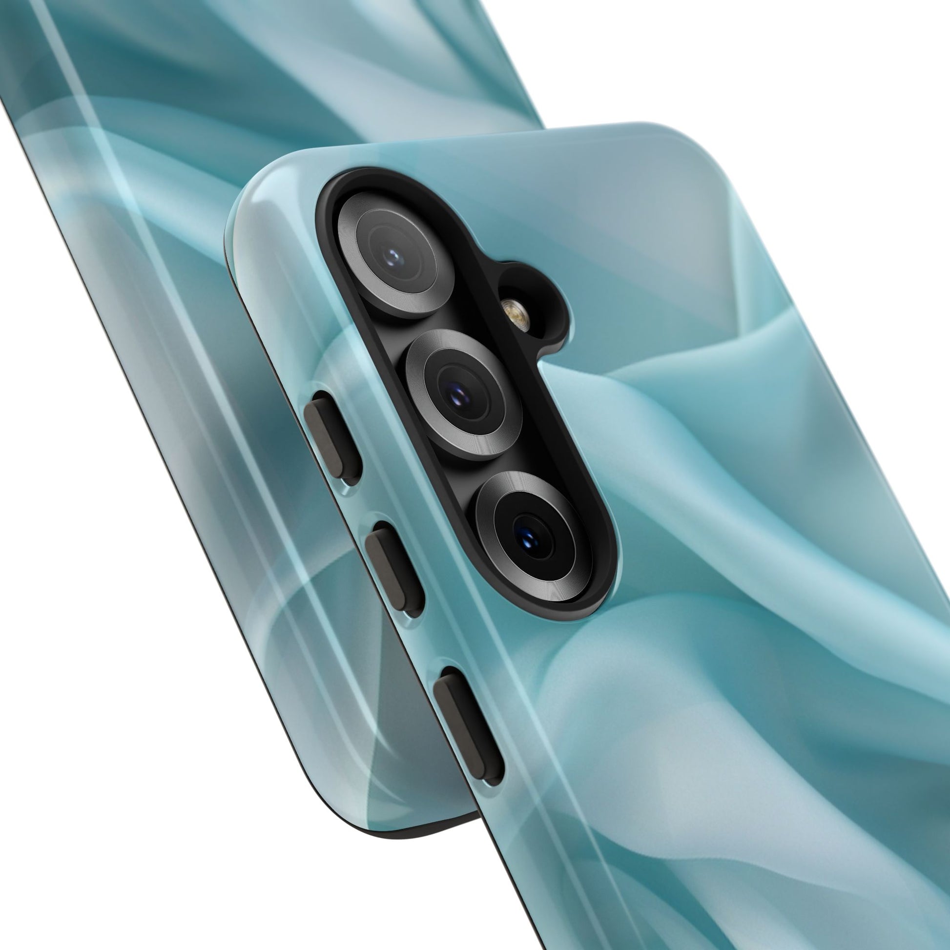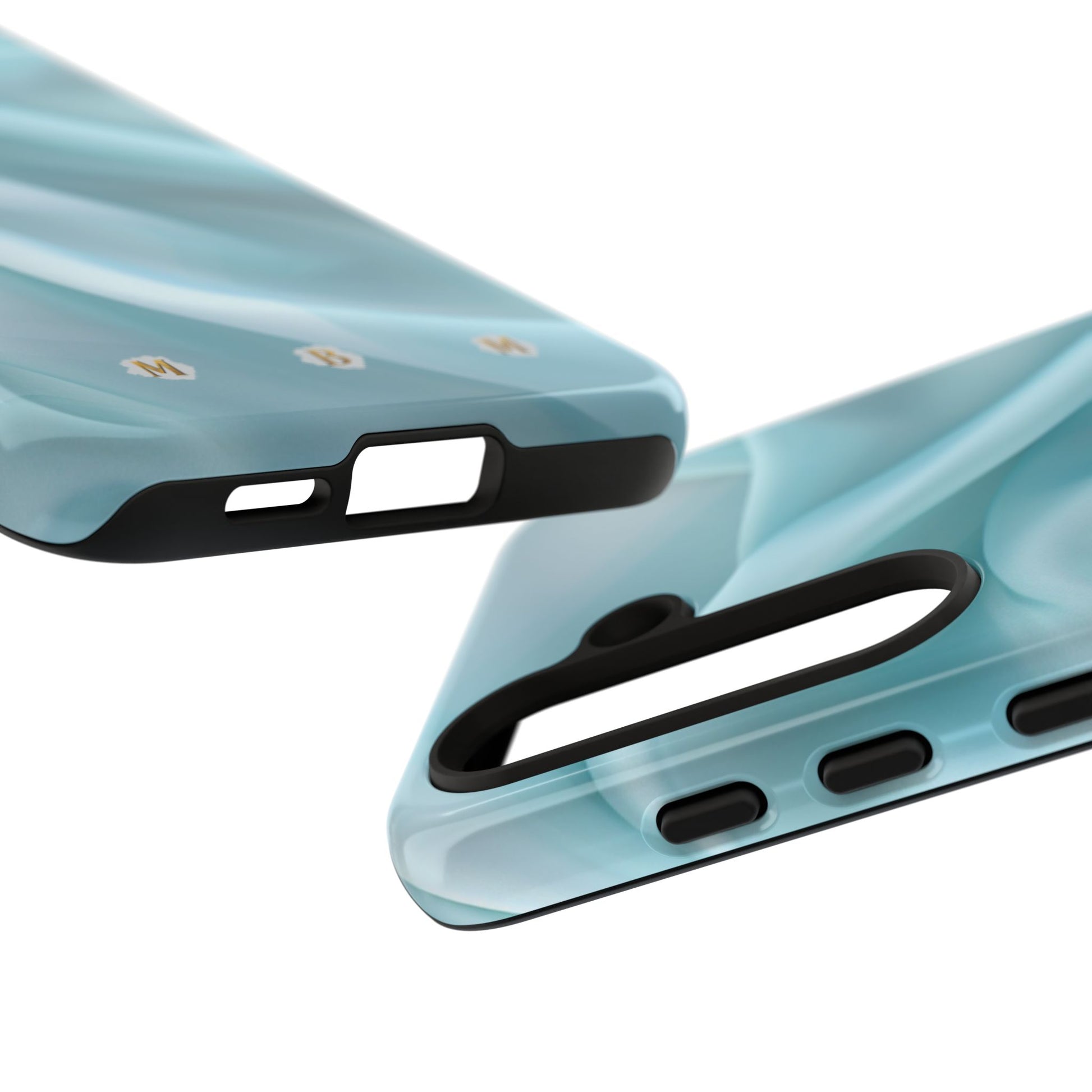 Oh, brace yourselves for a phone case that's as dreamy as a cloud drifting across a summer sky! Picture this: a phone case adorned with sky blue and soft white saffron fabric, delicately flowy and puckered to give it that irresistible depth. It's like holding a piece of the sky right in the palm of your hand, but with a touch of romance woven in. Trust me, your phone will feel like it's floating on air with this heavenly accessory. Prepare for your heart to skip a beat every time you catch a glimpse of it!