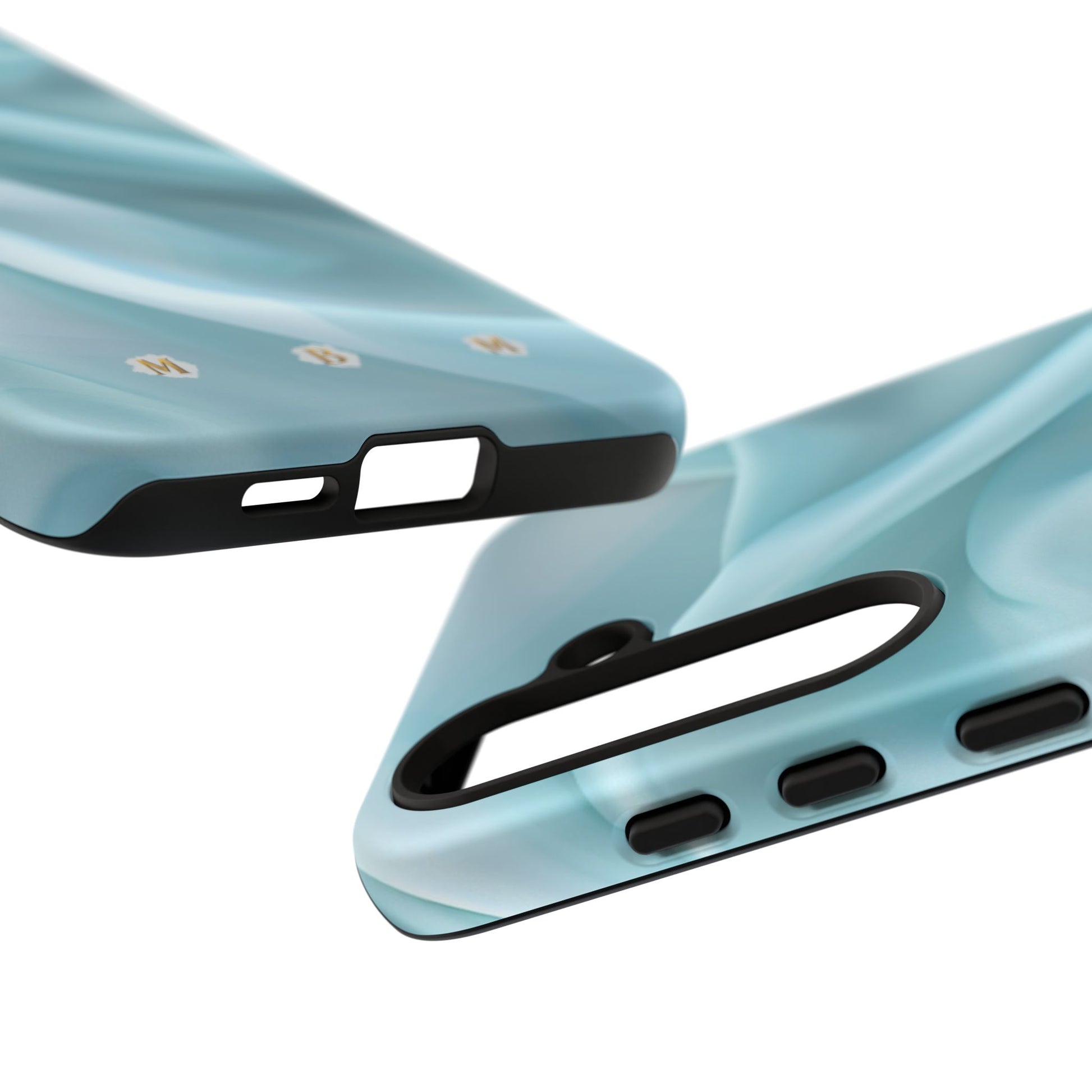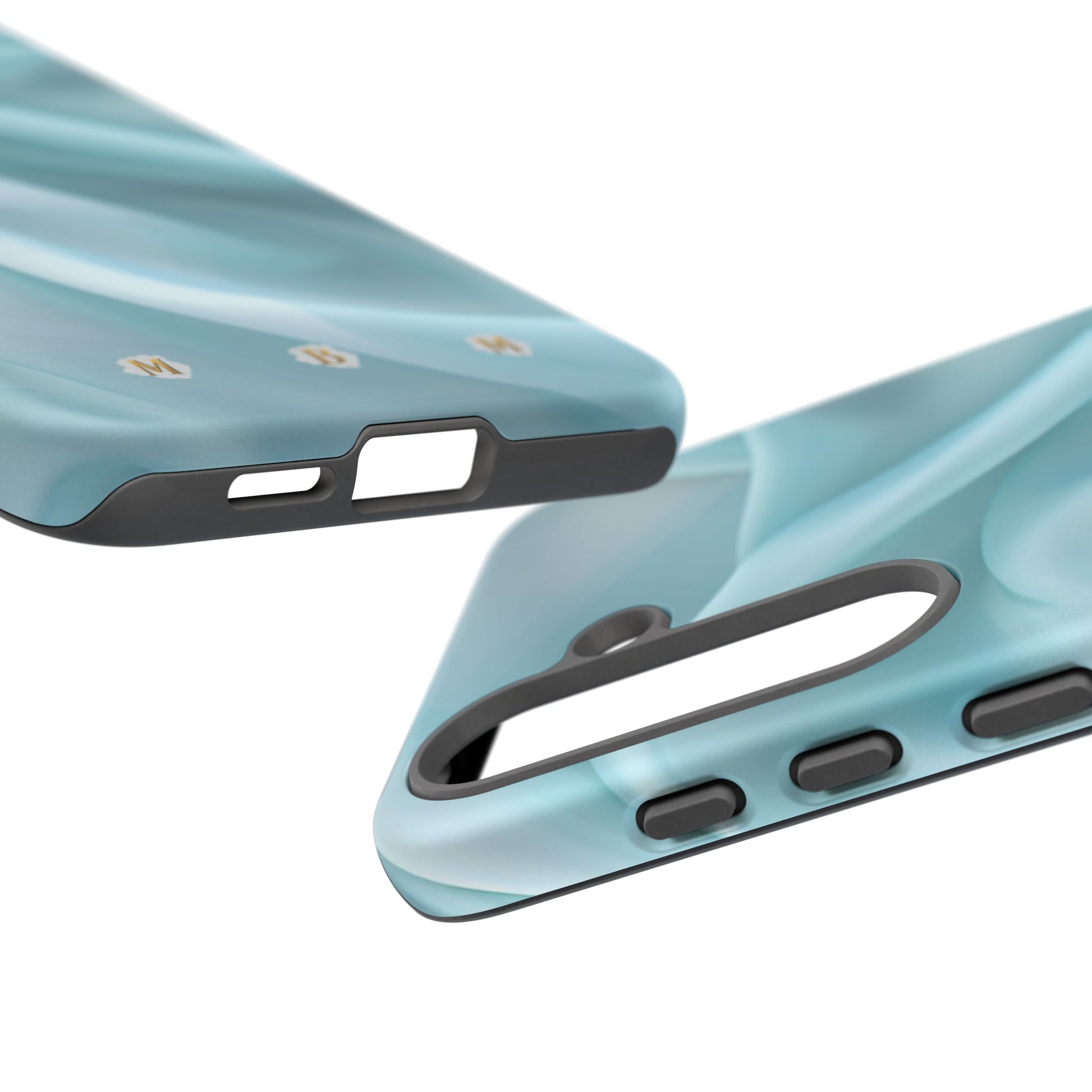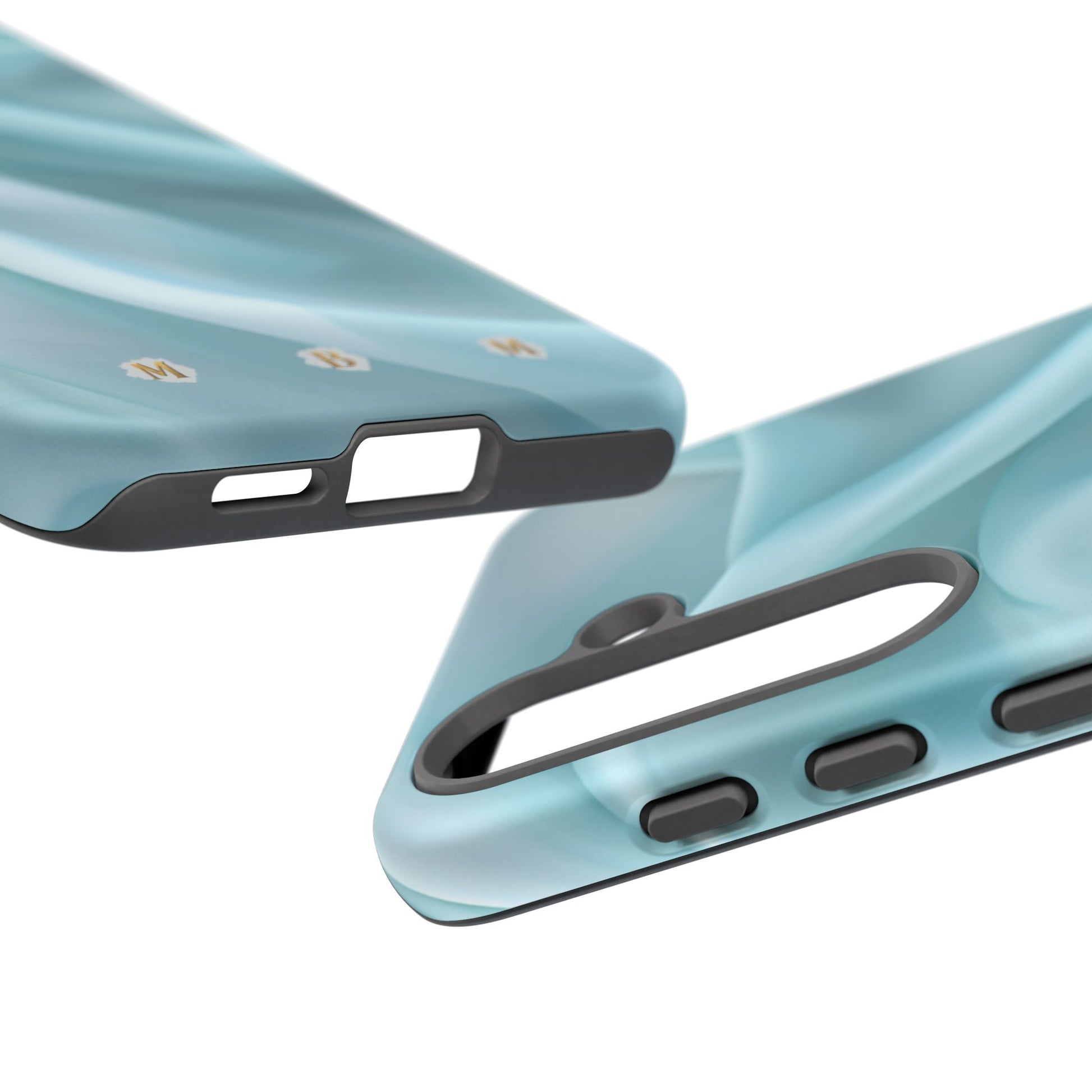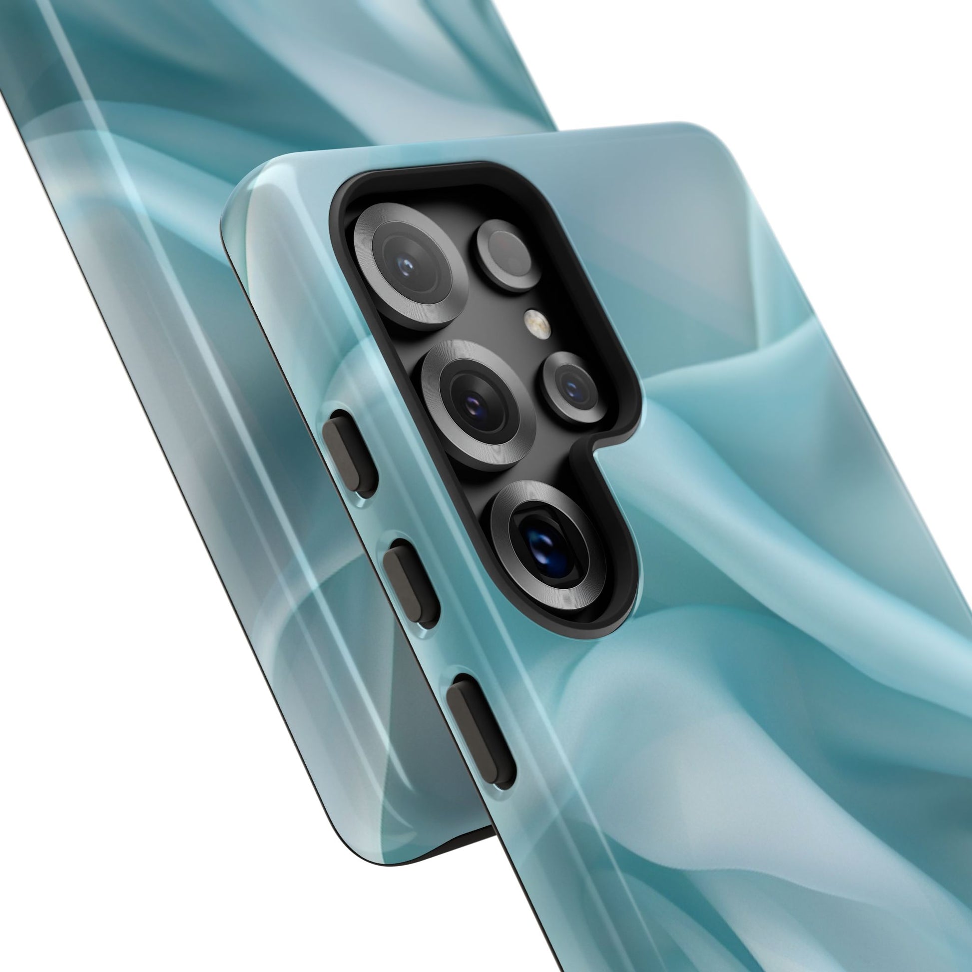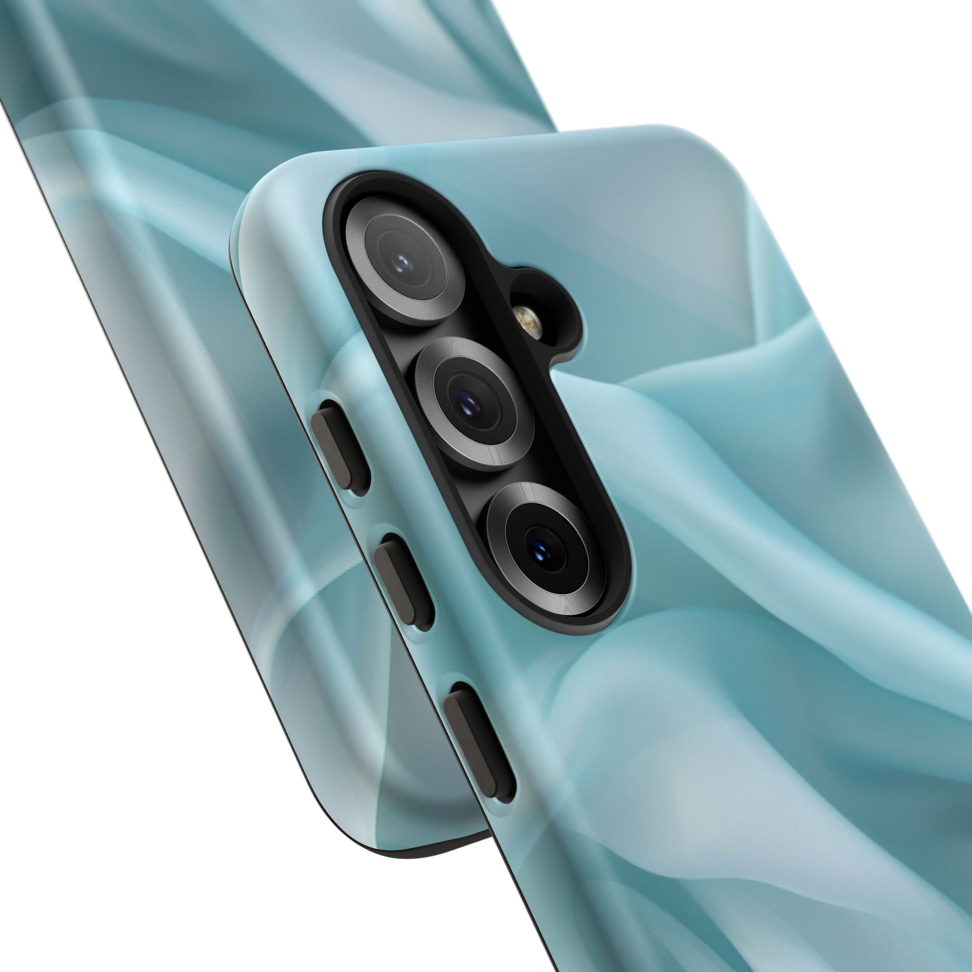 Oh, brace yourselves for a phone case that's as dreamy as a cloud drifting across a summer sky! Picture this: a phone case adorned with sky blue and soft white saffron fabric, delicately flowy and puckered to give it that irresistible depth. It's like holding a piece of the sky right in the palm of your hand, but with a touch of romance woven in. Trust me, your phone will feel like it's floating on air with this heavenly accessory. Prepare for your heart to skip a beat every time you catch a glimpse of it!