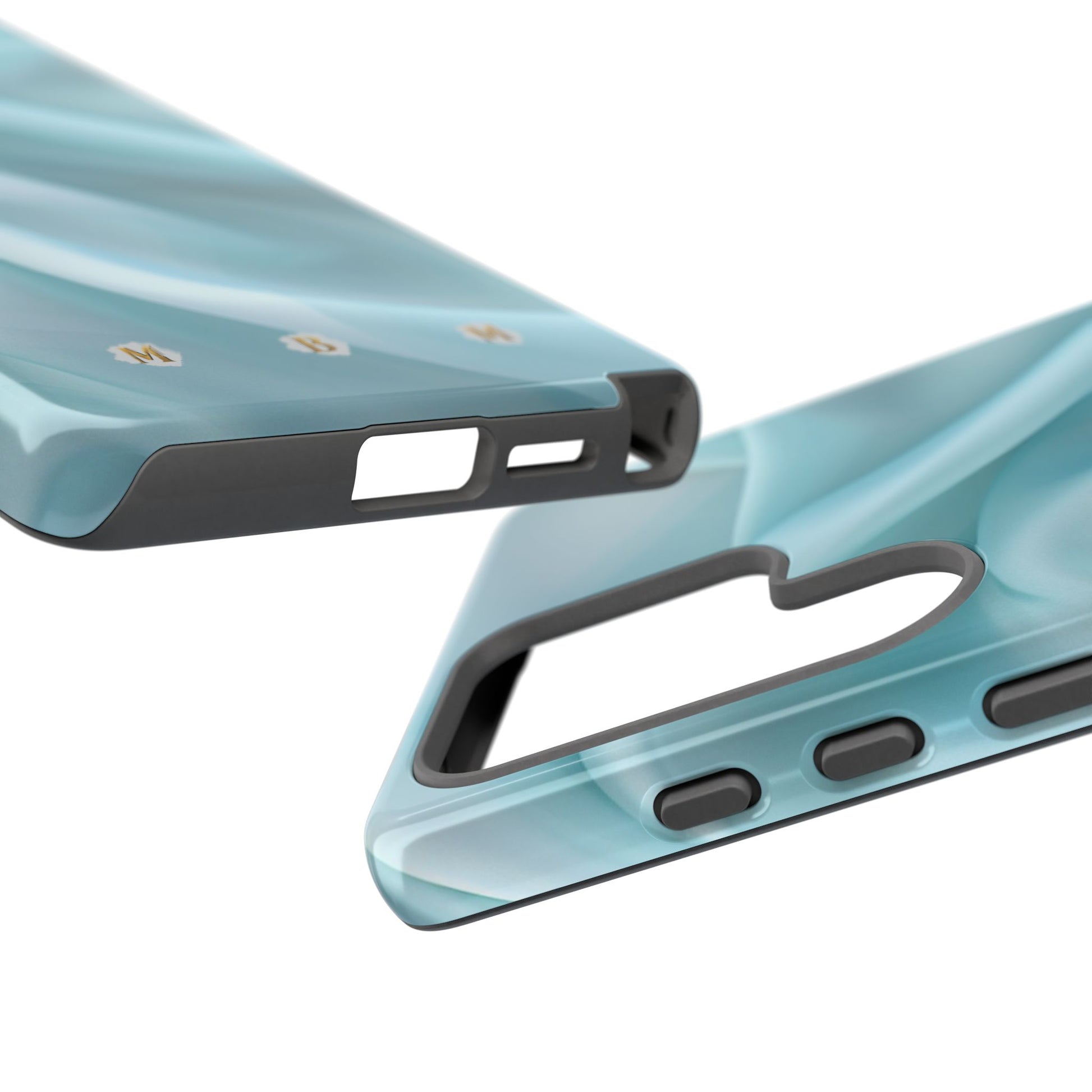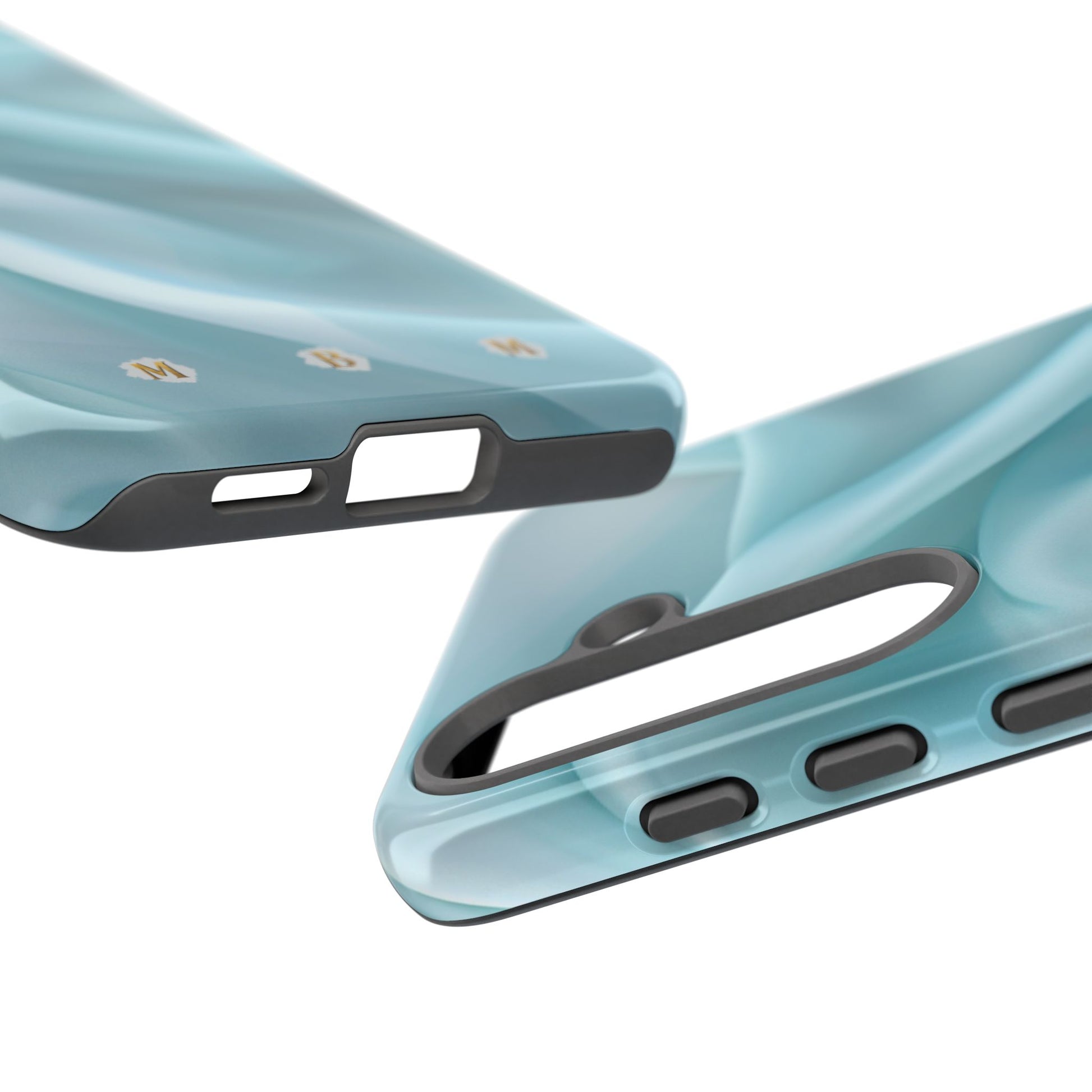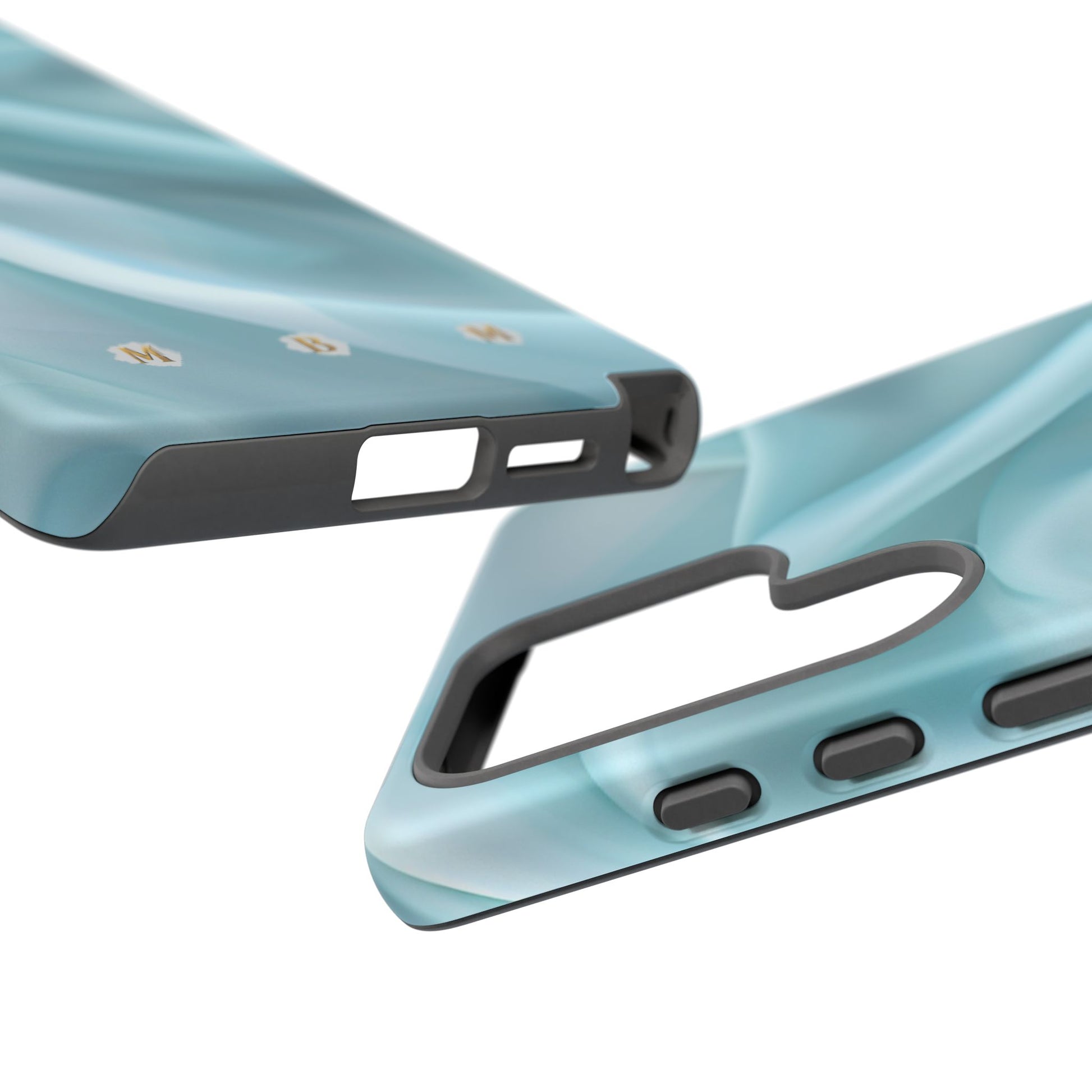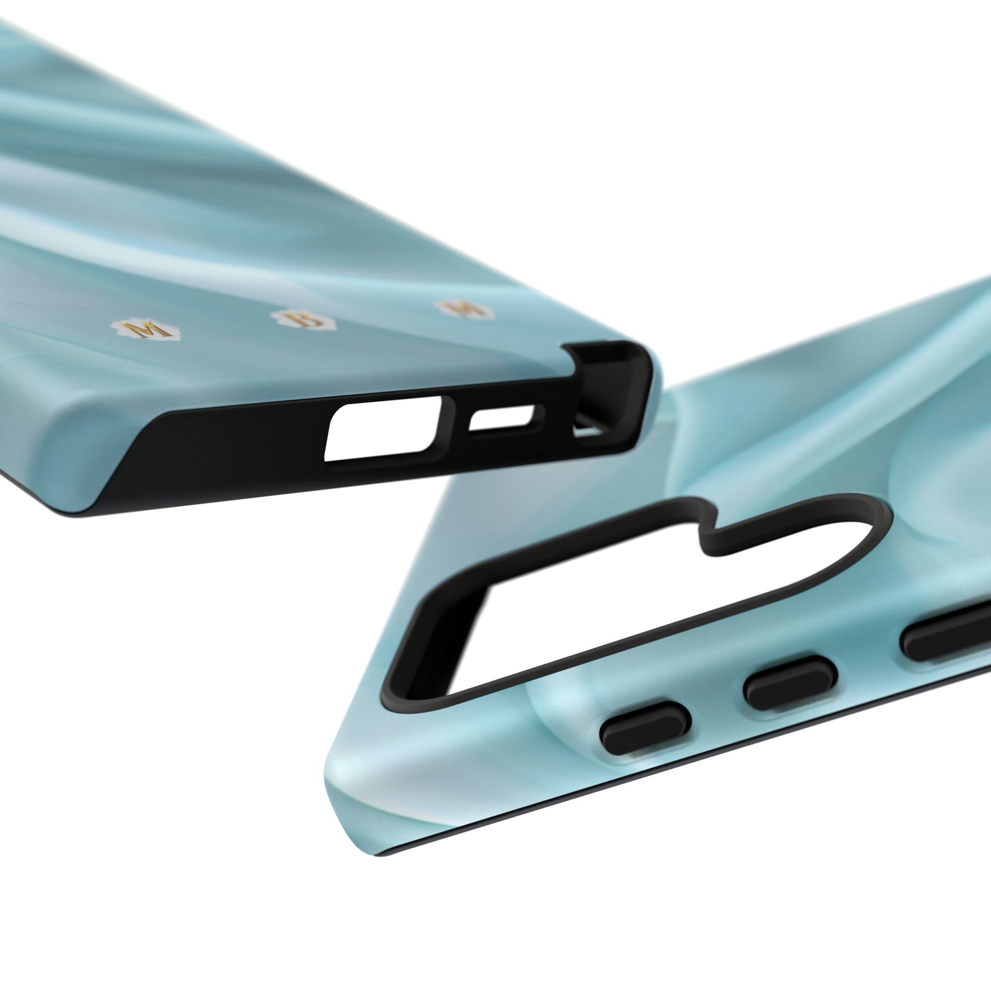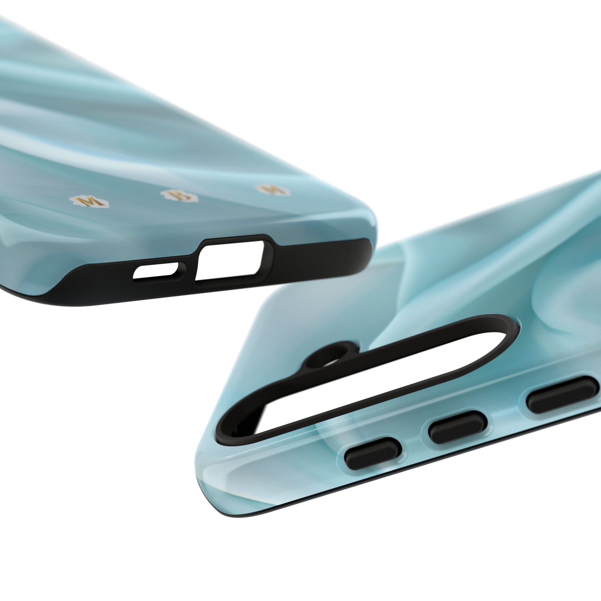 Oh, brace yourselves for a phone case that's as dreamy as a cloud drifting across a summer sky! Picture this: a phone case adorned with sky blue and soft white saffron fabric, delicately flowy and puckered to give it that irresistible depth. It's like holding a piece of the sky right in the palm of your hand, but with a touch of romance woven in. Trust me, your phone will feel like it's floating on air with this heavenly accessory. Prepare for your heart to skip a beat every time you catch a glimpse of it!