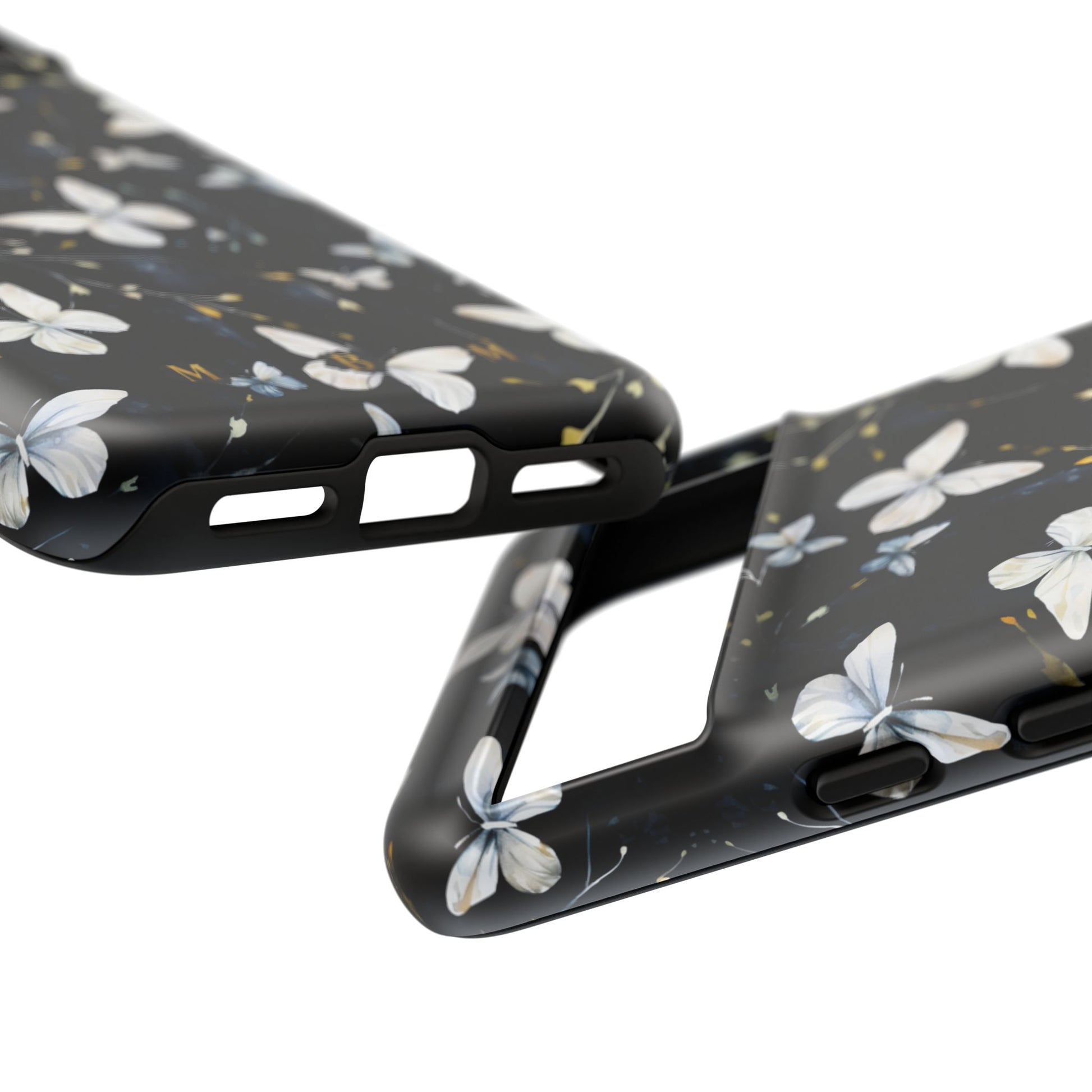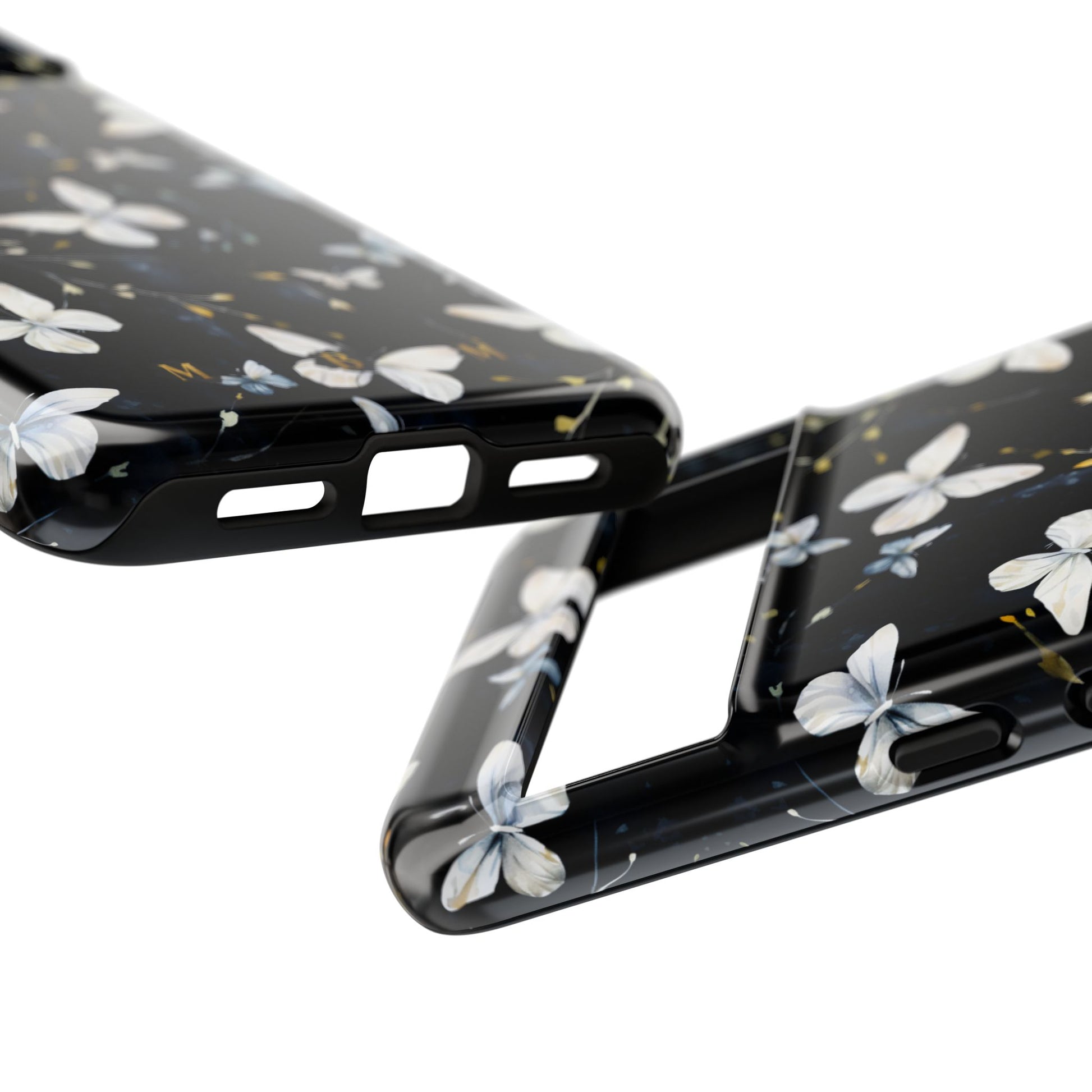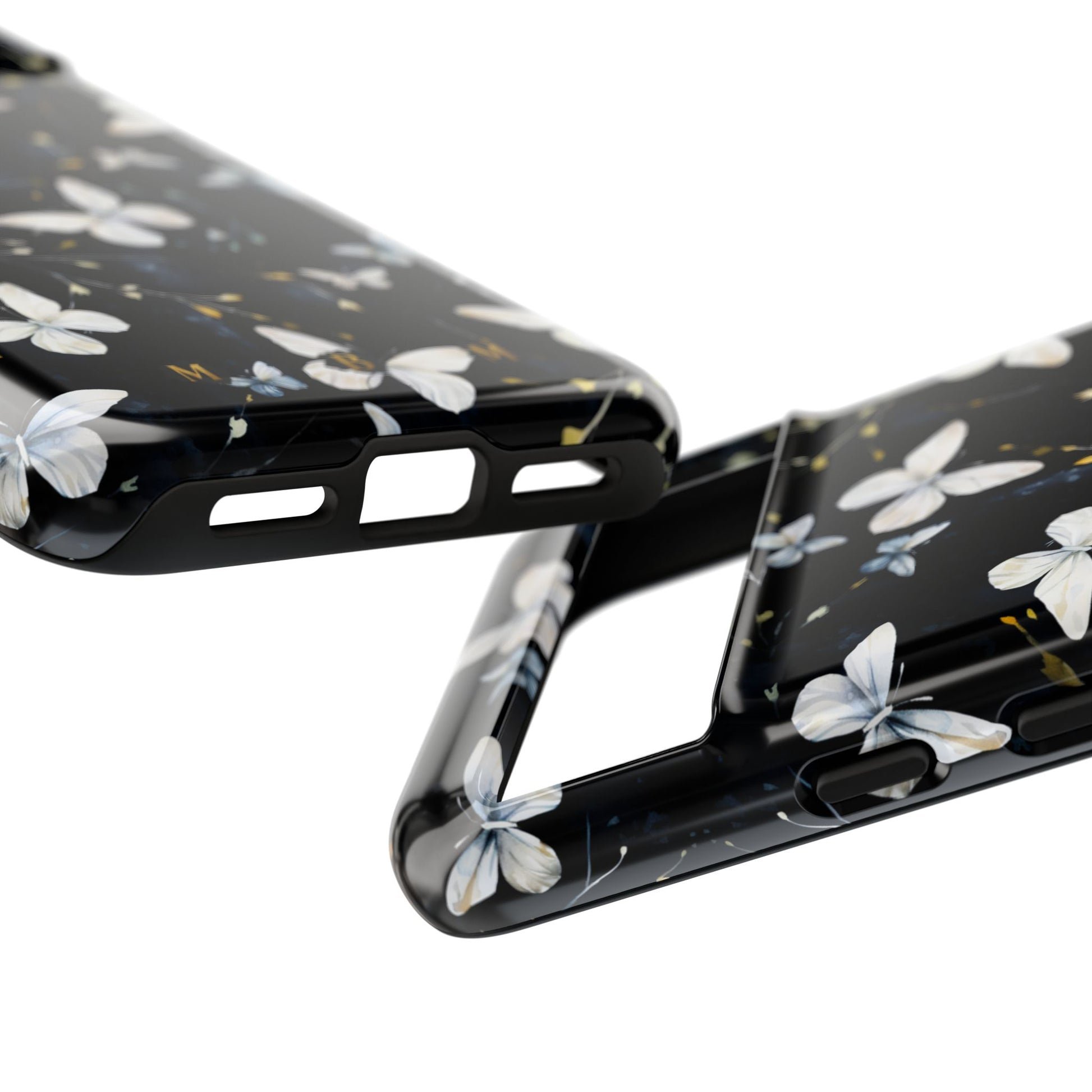 Meet your new favorite phone case, White Butterflies, where elegance flutters and blooms! This case is all about the delicate dance of tiny white butterflies and dainty brown floral bulbs on a sleek black background. It's like having a mini enchanted garden in your pocket! Perfect for those days when you want a little whimsy with your protection. Because why should your phone be plain when it can be positively enchanting? Snap on this case and let your phone take flight with style!