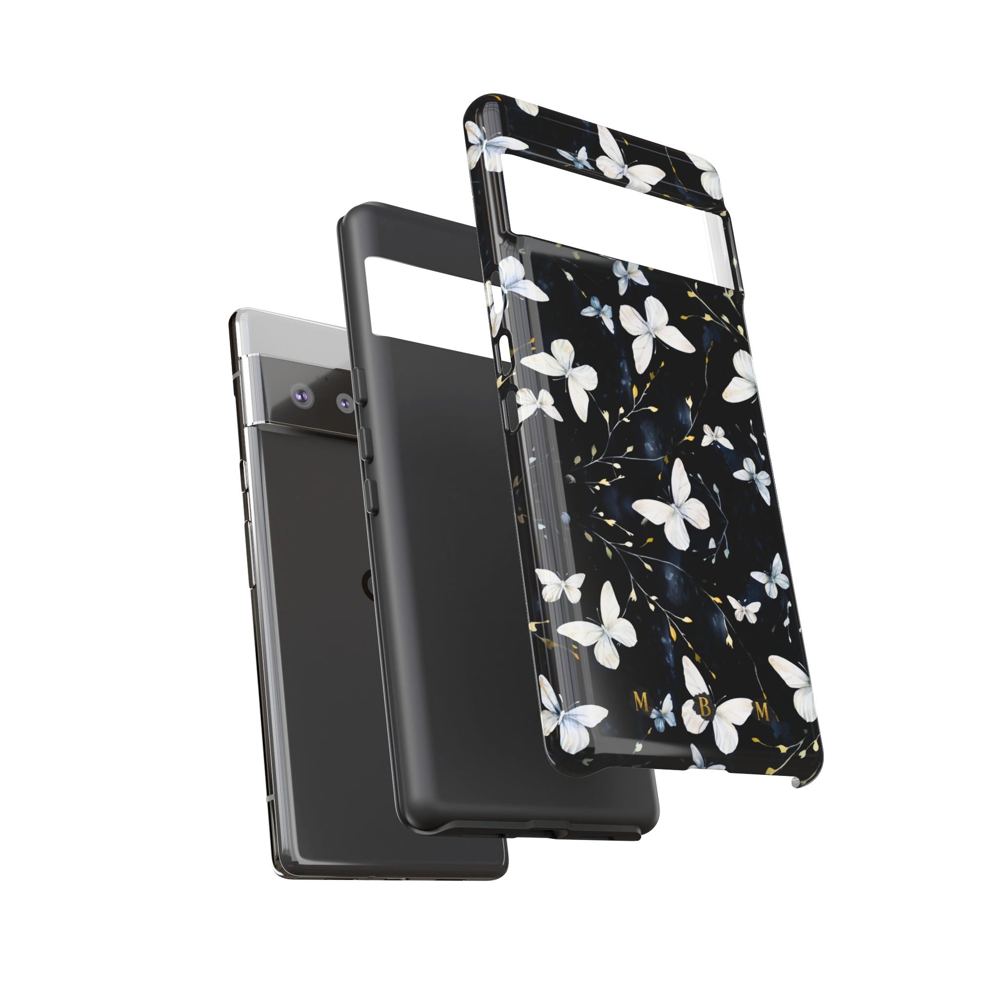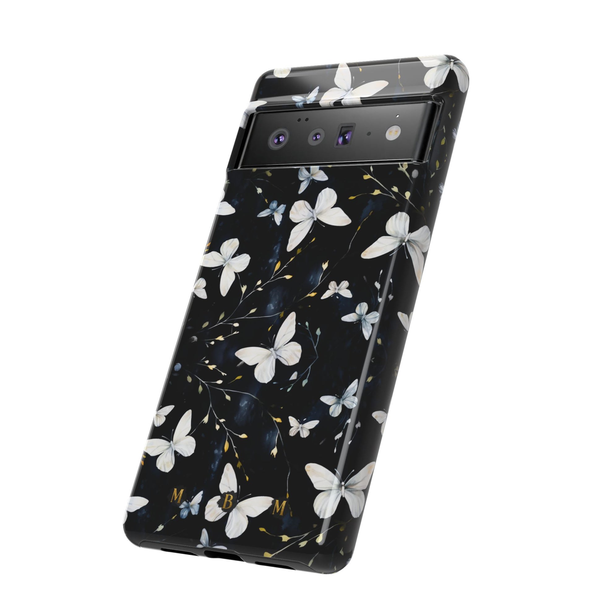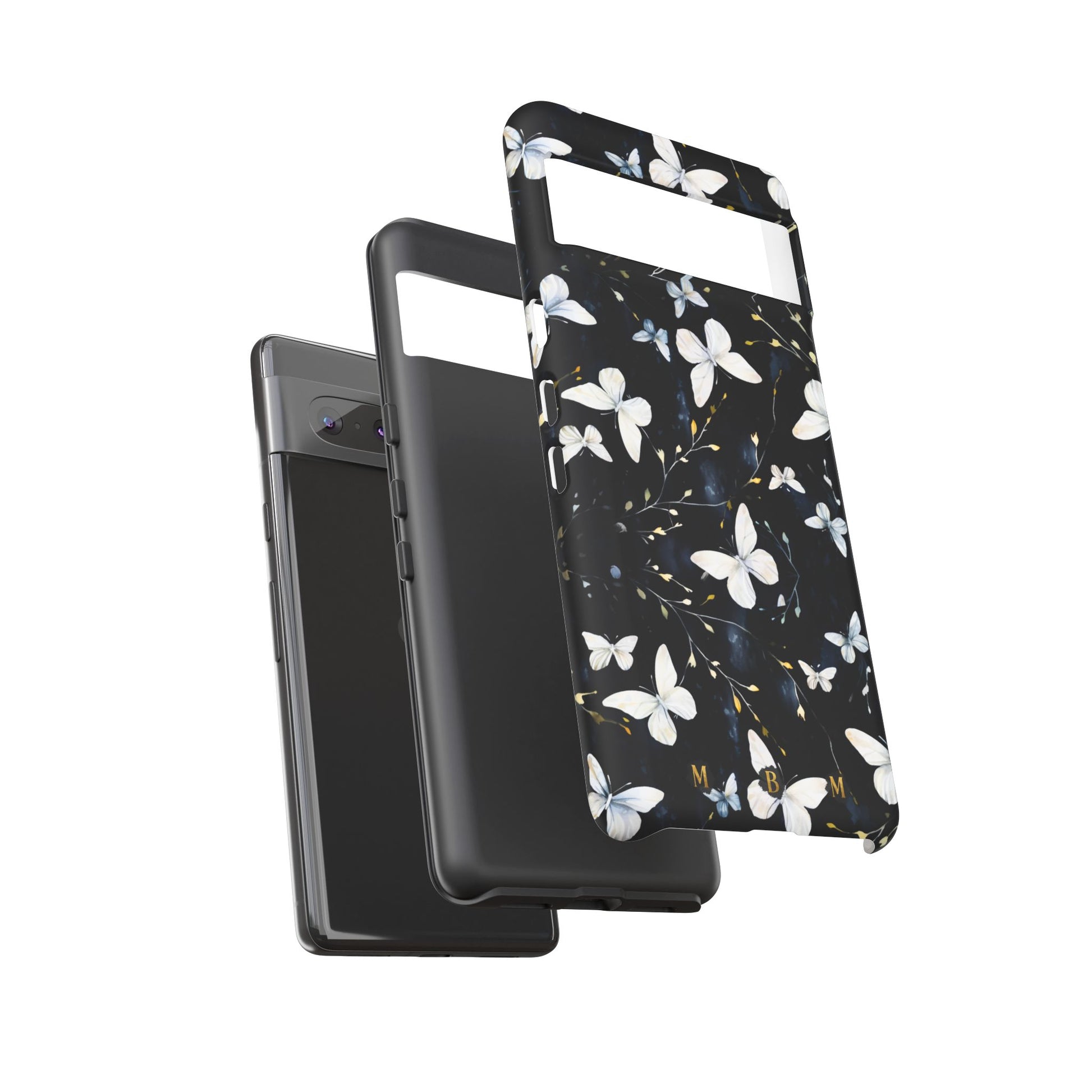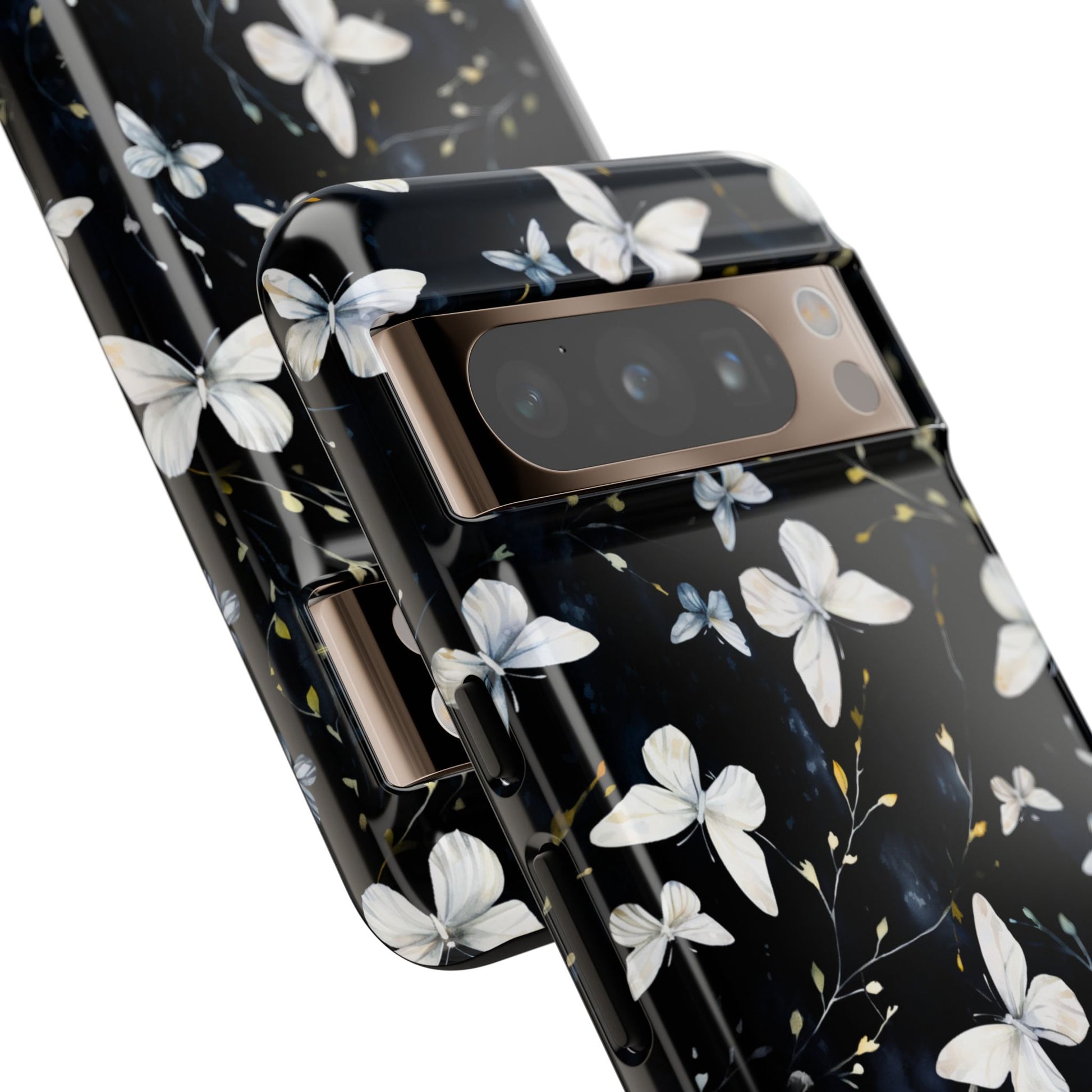 Meet your new favorite phone case, White Butterflies, where elegance flutters and blooms! This case is all about the delicate dance of tiny white butterflies and dainty brown floral bulbs on a sleek black background. It's like having a mini enchanted garden in your pocket! Perfect for those days when you want a little whimsy with your protection. Because why should your phone be plain when it can be positively enchanting? Snap on this case and let your phone take flight with style!